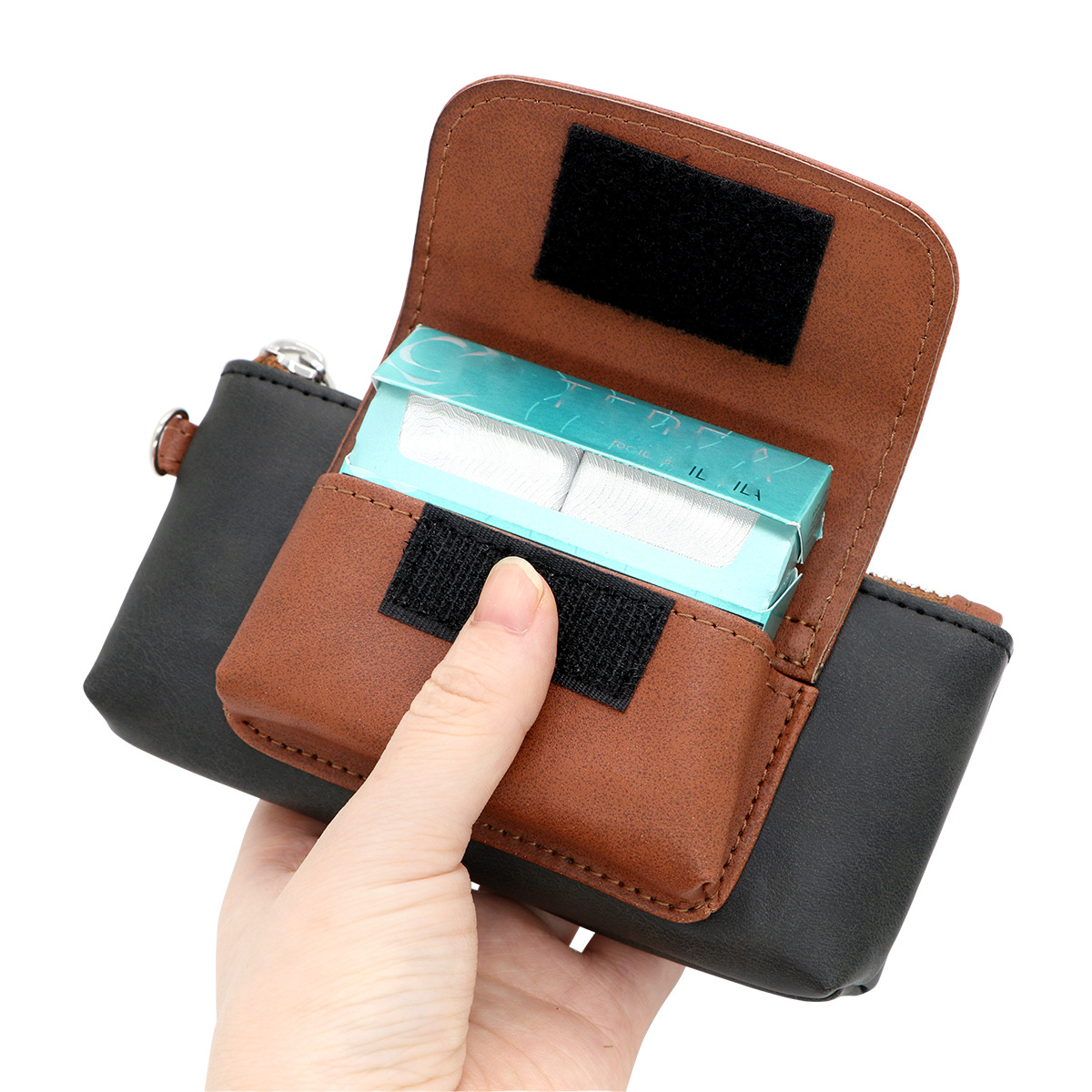 魔鬼氈快取前袋: 專為「菸彈盒」設計。外層棕色皮質翻蓋採用魔鬼氈固定,可放入一整盒 TEREA 或 SENTIA 菸彈。即使包包掛在腰間,也能單手快速取菸,無需拉開主拉鍊。