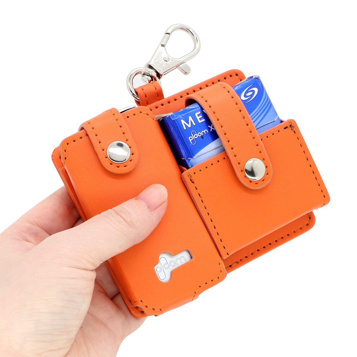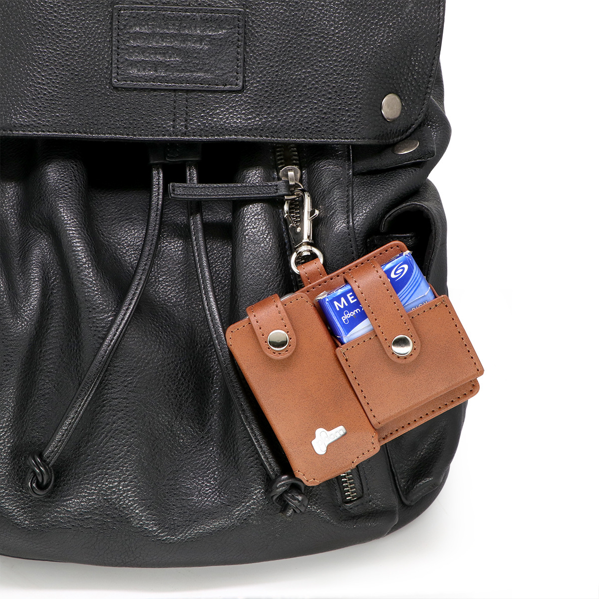 Ploom X 的前面板非常容易沾染指紋或被鑰匙劃破漆面。這款掛包不僅提供了物理隔絕保護,更重要的是解決了「煙彈隨處放」的痛點。「一機、一彈、一掛鉤,這就是最完美的移動解決方案。」